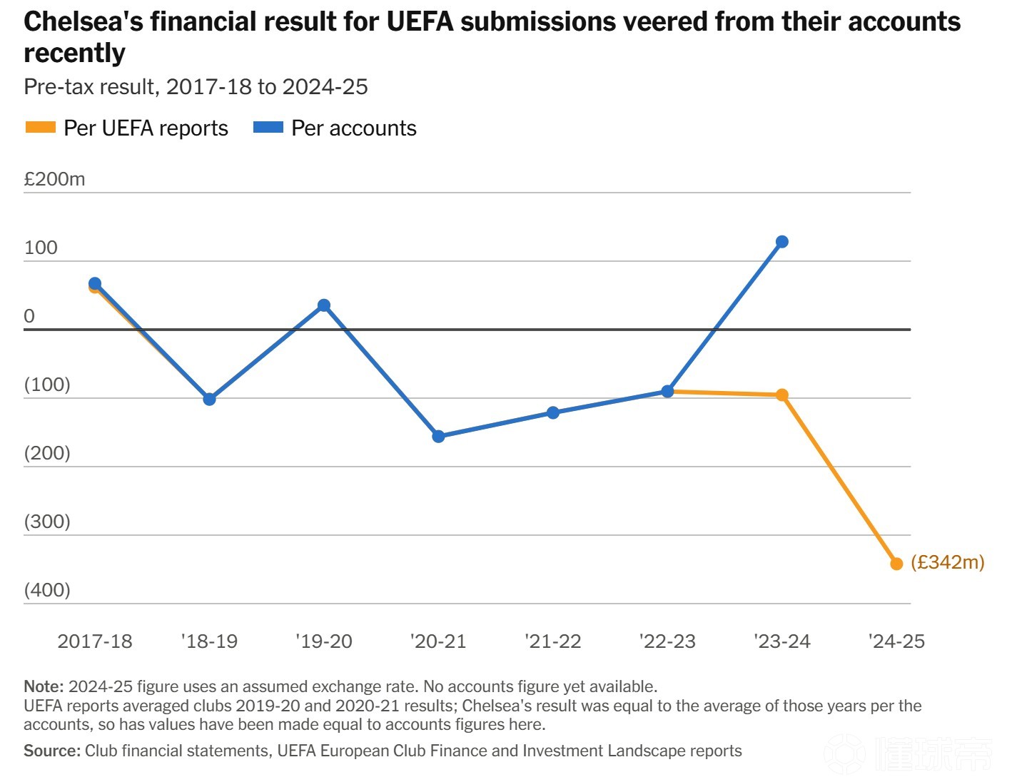 因此,切爾西最終公布的年度財報虧損,可能低于歐足聯(lián)報告中的數(shù)字。但對于歐洲層面的財務監(jiān)管而言,歐足聯(lián)口徑才是關(guān)鍵。