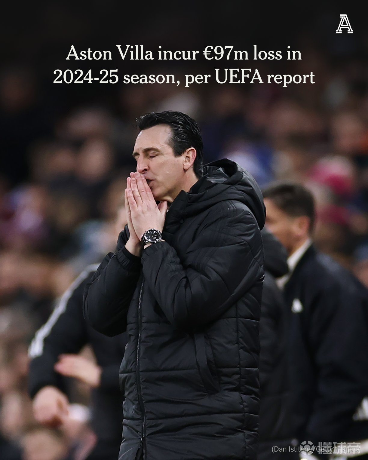 目前維拉以49分位居英超第三,領(lǐng)先第四名曼聯(lián)3分,但近期狀態(tài)起伏明顯:近7輪僅取2勝2平3負(fù)。阿斯頓維拉在向歐足聯(lián)提交的 2024-25 賽季預(yù)算中估計(jì)稅前虧損 8200 萬英鎊(9400 萬歐元)。財(cái)報(bào)顯示,維拉連續(xù)第三年虧損,2022-23賽季稅前虧損1.203億英鎊,2023-24賽季虧損8590萬英鎊。這使得維拉三年來的虧損總額接近 2.9 億英鎊。