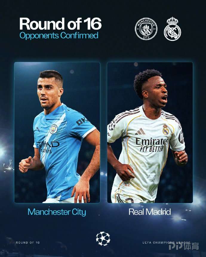 2025/26賽季歐冠淘汰賽對陣抽簽,曼城在1/8決賽抽中皇馬。