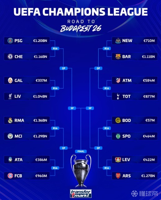 德轉(zhuǎn)列歐冠16強(qiáng)對陣身價
